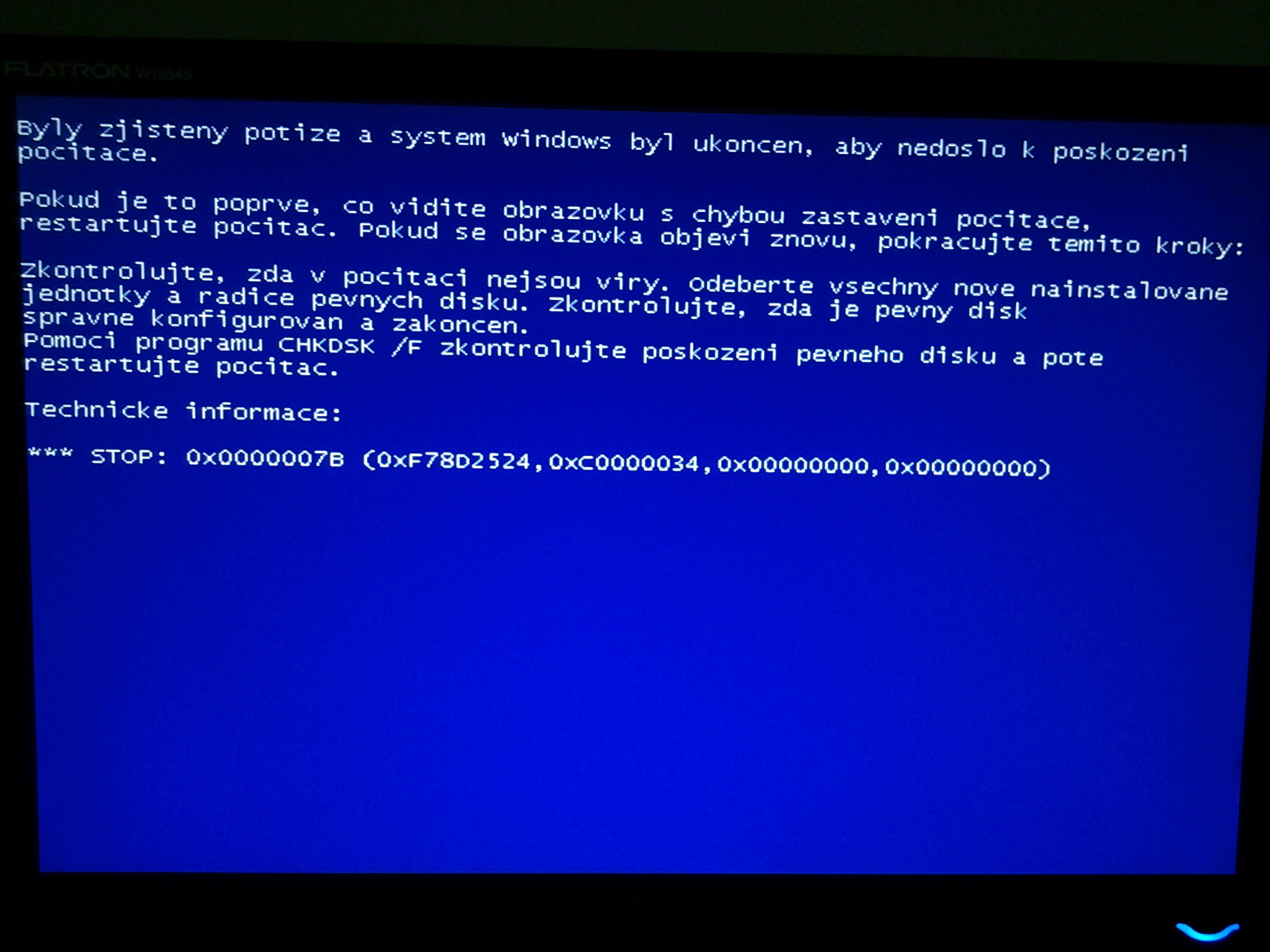 Chybové hlášení při instalaci Win XP Home Profesional.