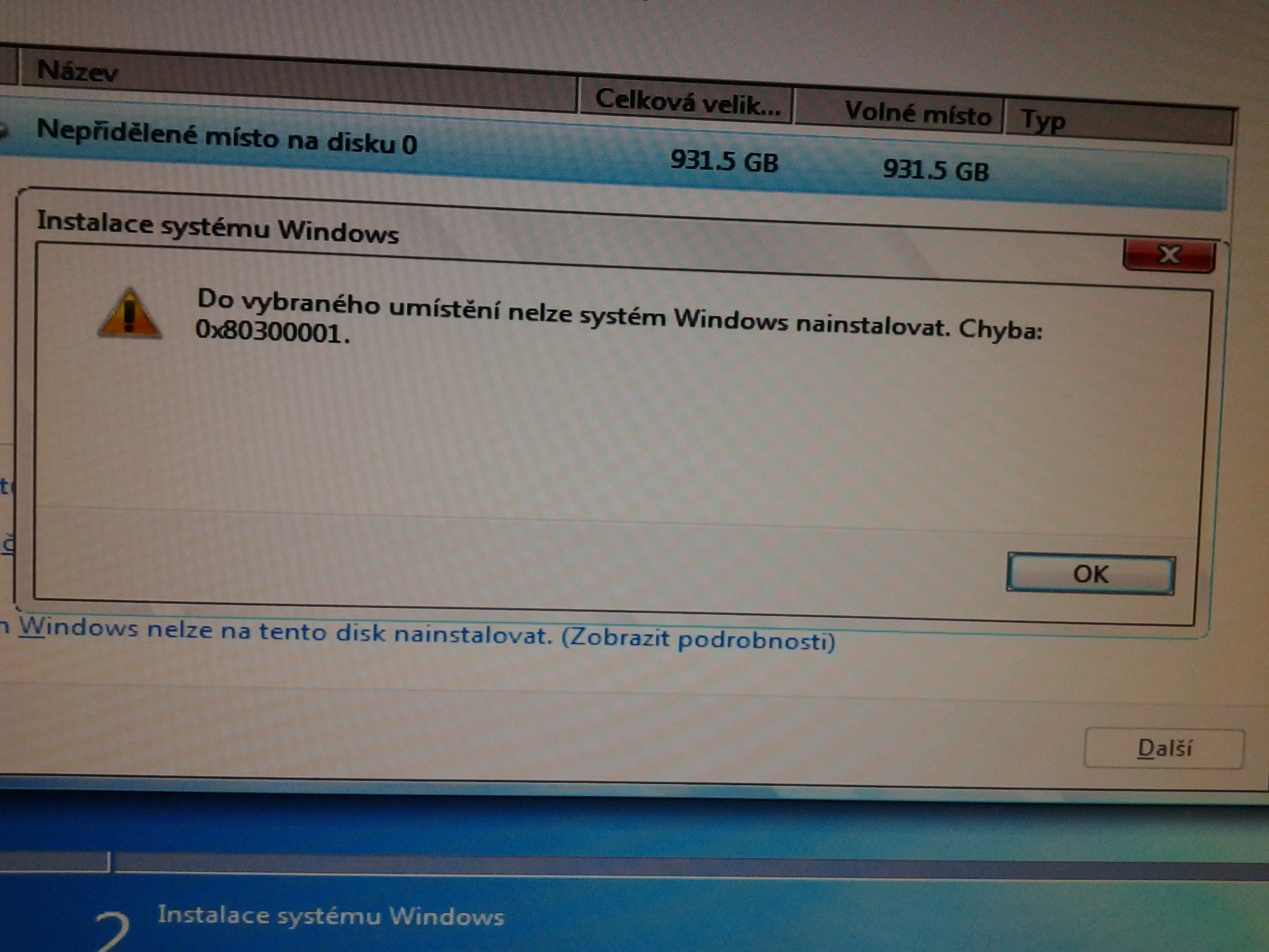 Nejdříve jsem zkusil instalaci. Zvolil jsem ale omylem opačný postup. Nedjříve formát a pak načtení těch ovladačů.