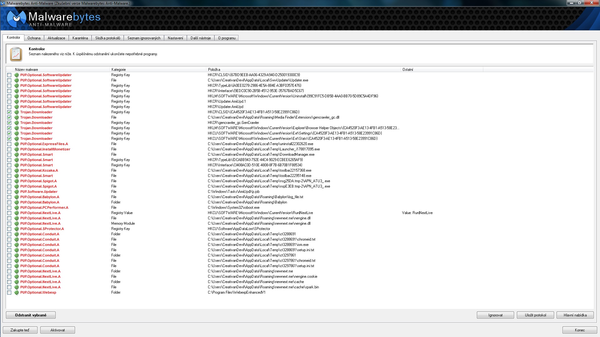 Většina z nich jsou nepotřebné hovadiny, některé z nich asi taky budou způsobovat ty reklamy. Pro začátek bych se zbavil zaškrtnutého Trojan.Downloader a taky PUP.Optional.PCPerformer.A, taky by to chtělo vědět co je v PC za programy. O ostatních virech co tam jsou zkusím zjistit co dělají ... možná by bylo lepší je smazat okamžitě :-|