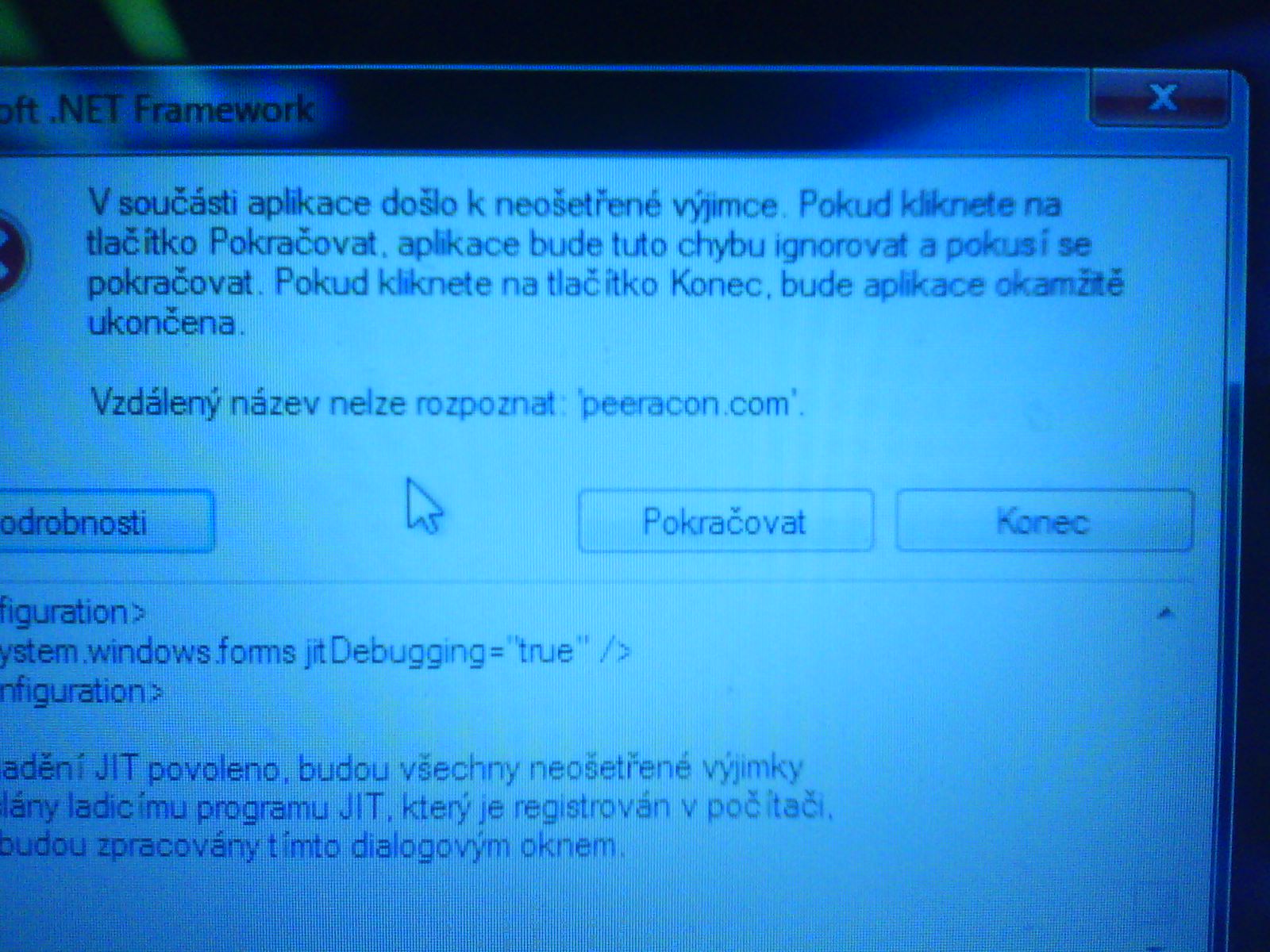 chyba Microsoft.Net framework ,, peeracon.com ,,