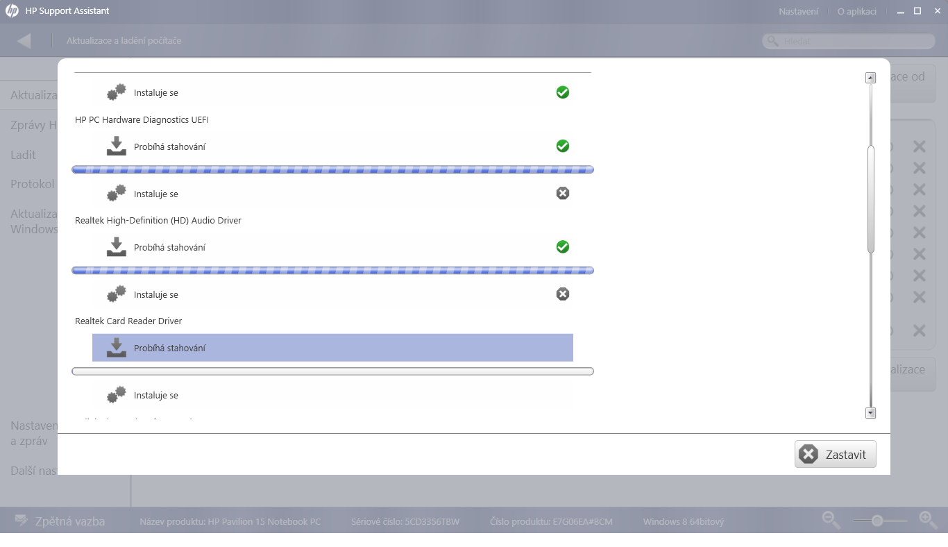Ale ted jsem asi prisel na to ze se stahuji sami... HP support assistent stahuje např nejaky audio driver apod,takže to bude ještě zajímavé.