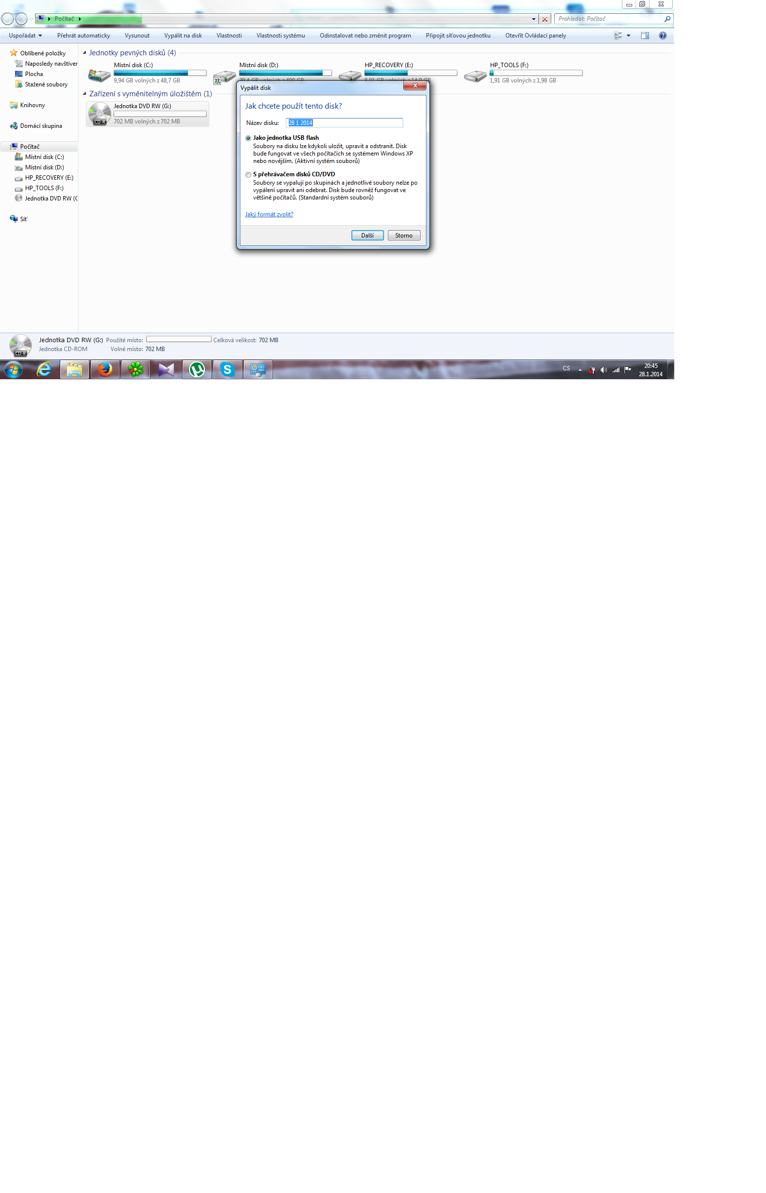 No a keď necháš tú prvú voľbu a stiskneš tlačítko Další, čo sa stane?