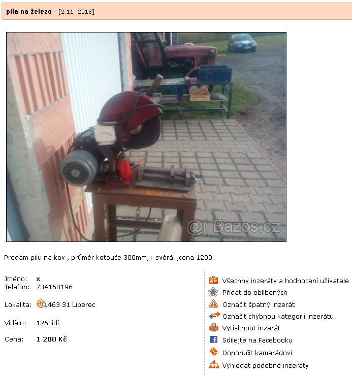 dobry den,potřebuju se podivat na inzerát na bazoš.cz který byl smazán,pan Hanžl,okr.liberec,tel.734…