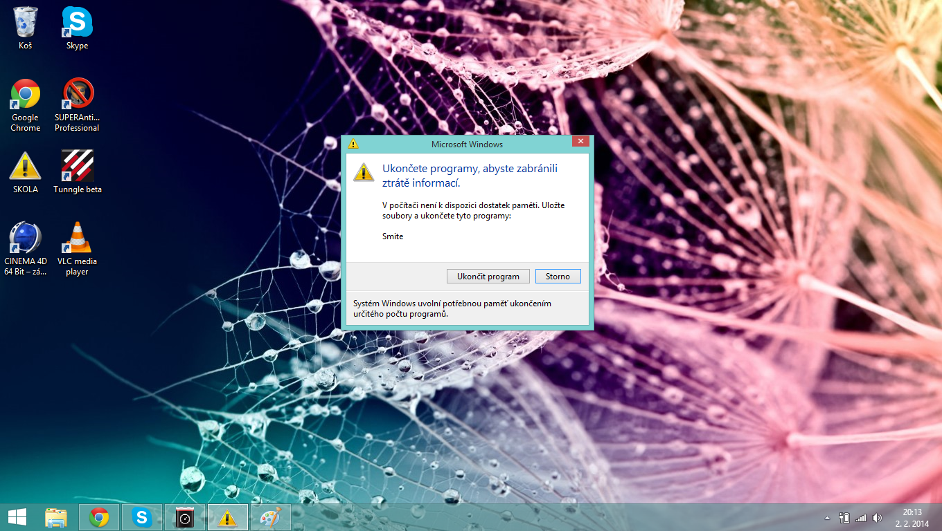 Systém na mě hází chybu -"Ukončete programy,abyste zabránili ztrátě informací"