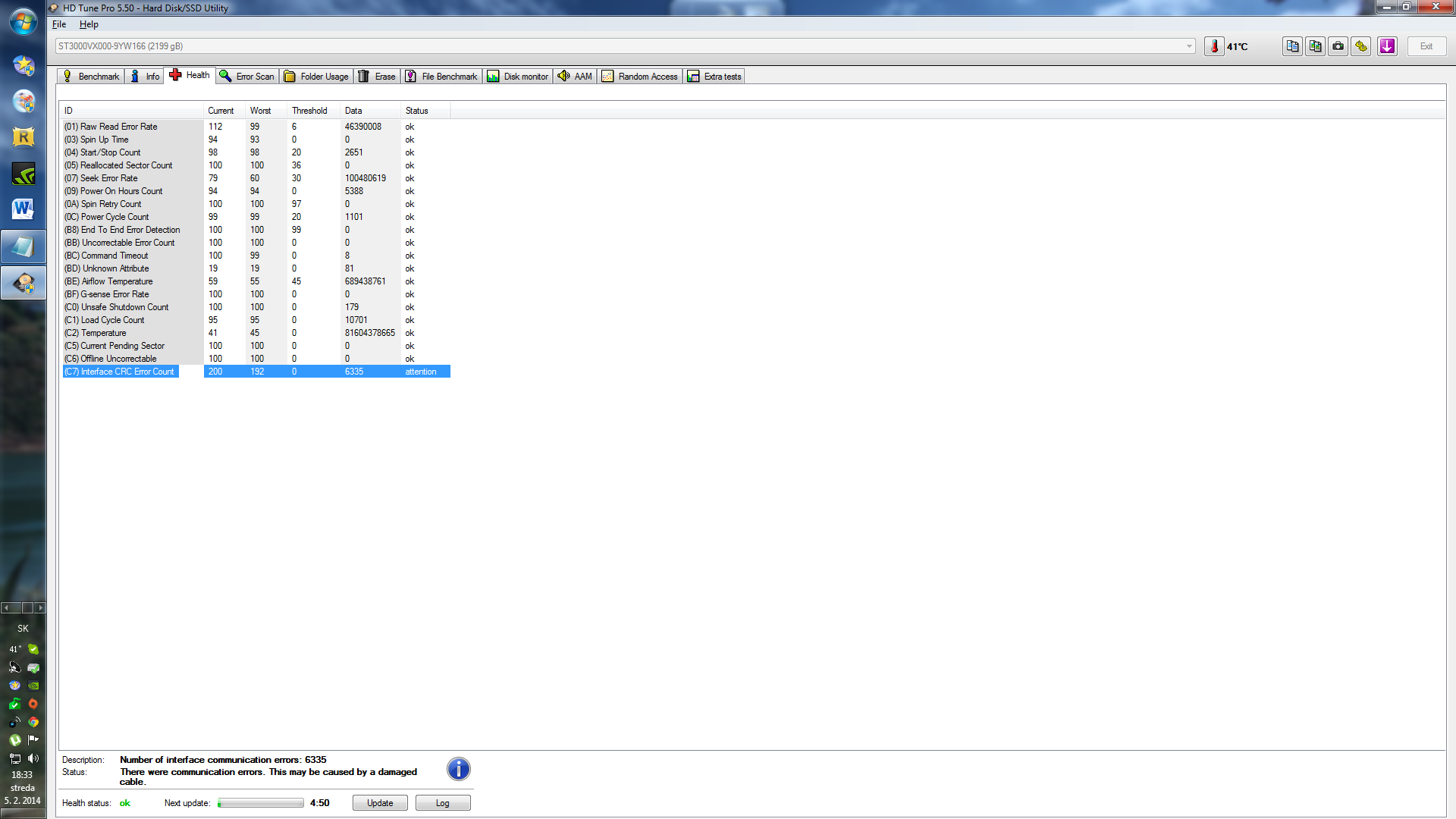 skusal som trochu ho prejst v HD Tune a v Healt mi naslo nieco to posledne co to je....ostatne je vsetko ok