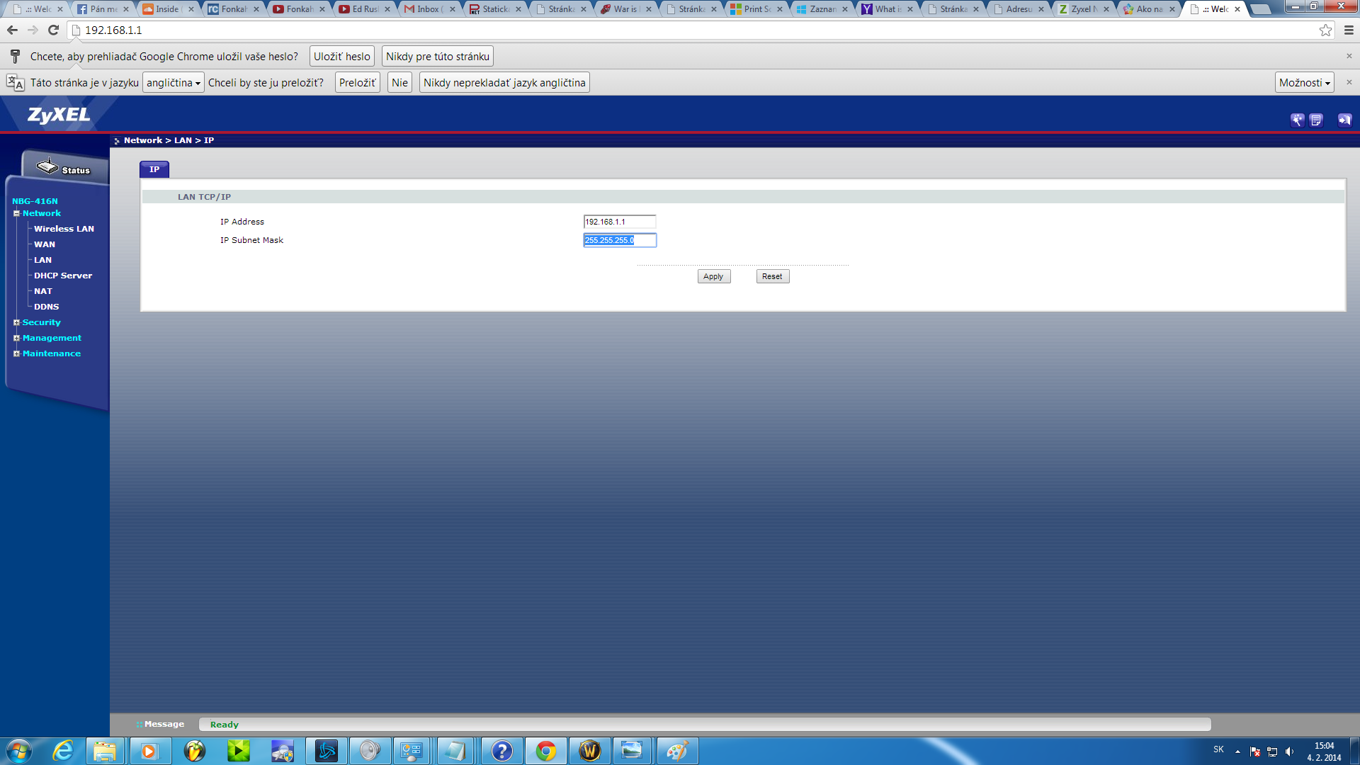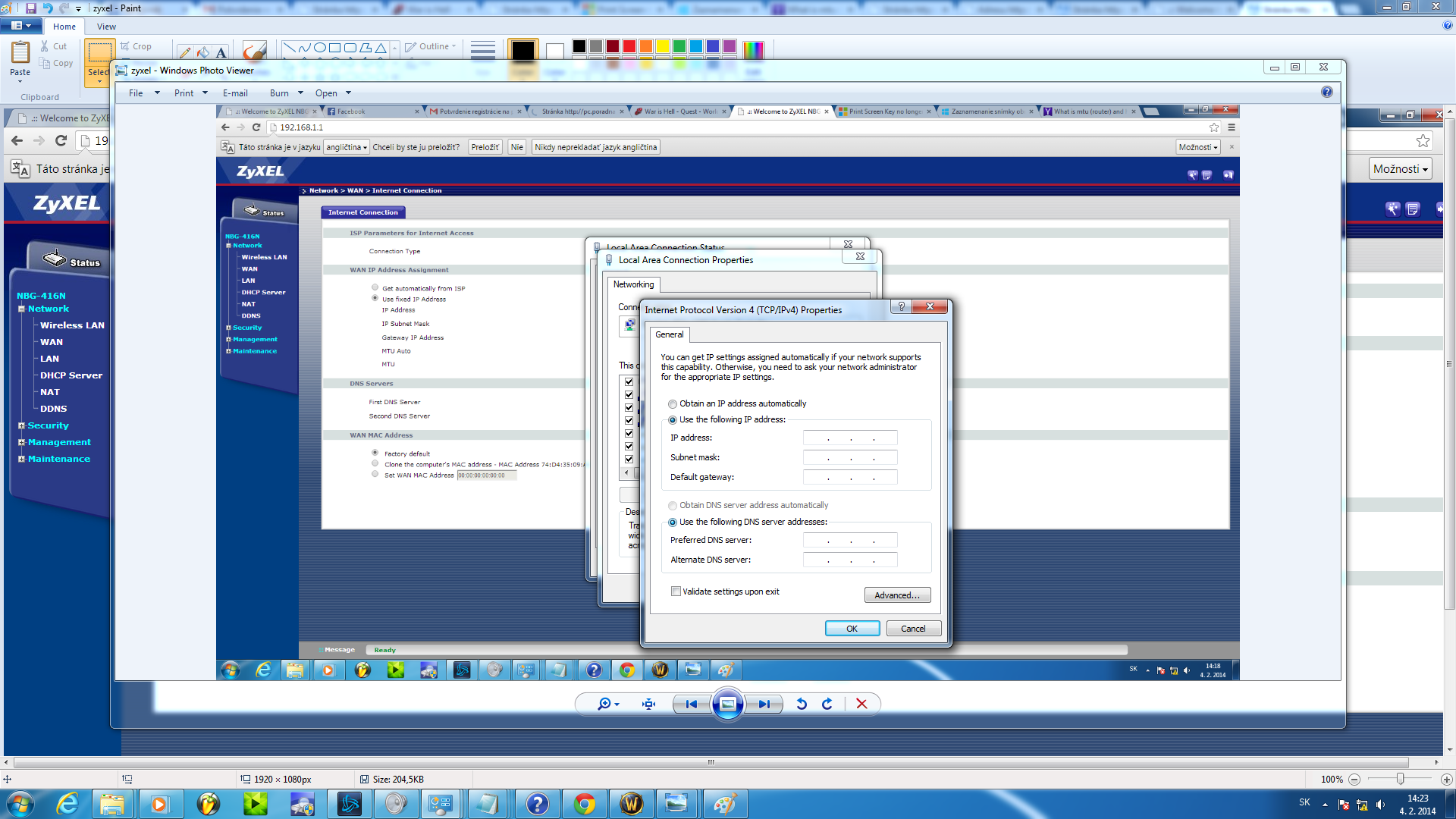 Poziadal som mojho Poskytovatela internetu o staticku IP adresu, mam router zyxel NBG-416N, chcem sa opytat ci je tento router vhodny na staticku IP adresu, skusal som router nakonfugurovat a windows mi hadze spravu ze nemam pristup na internet, zaroven sa chcem opytat ci treba nastavit IP aj do sietovej karty