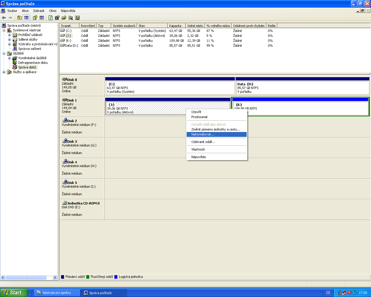 na obou byl OS Windows XP, Aktivní je primární oddíl na disku,na kterém je OS.Tedy C: a J: Z běžíc…
