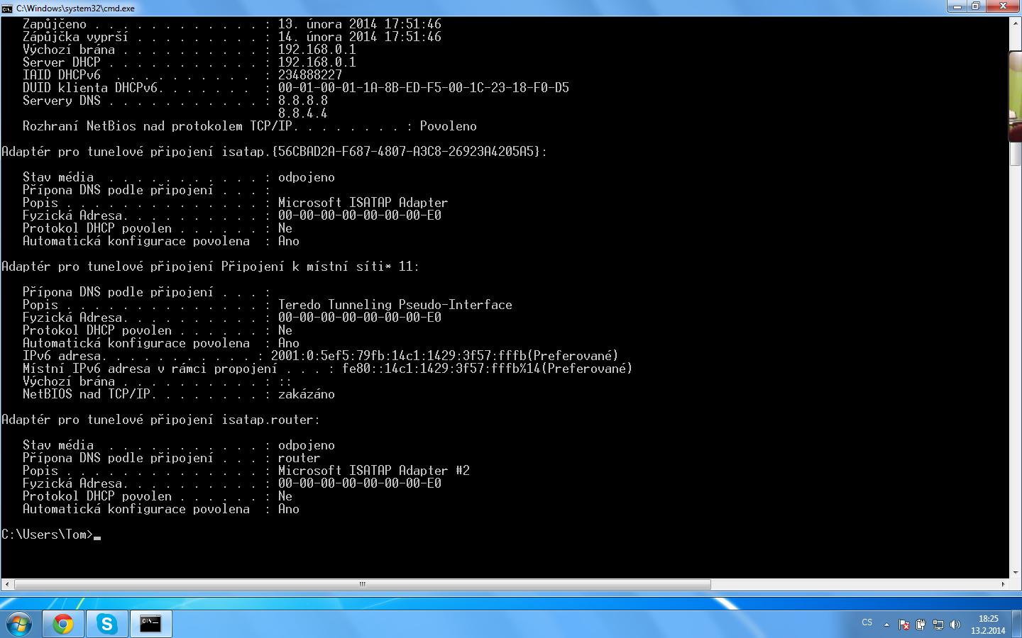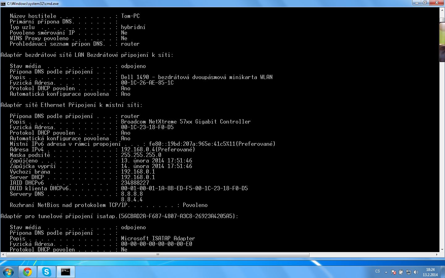 dostáváš od routeru korektní konfiguraci tcp/ip, v nastavení sítě problém není.