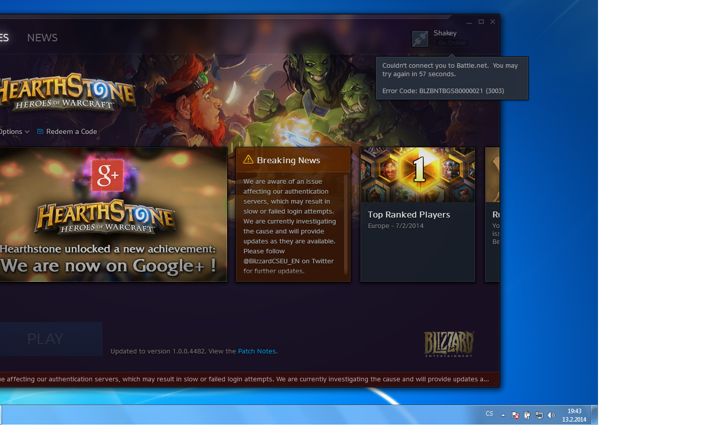 Zdravím, tak mám stejný problém, trvá už asi 14 dní, ze dne na den nejde přihlásit na online hry. Už si nějak pokročil?