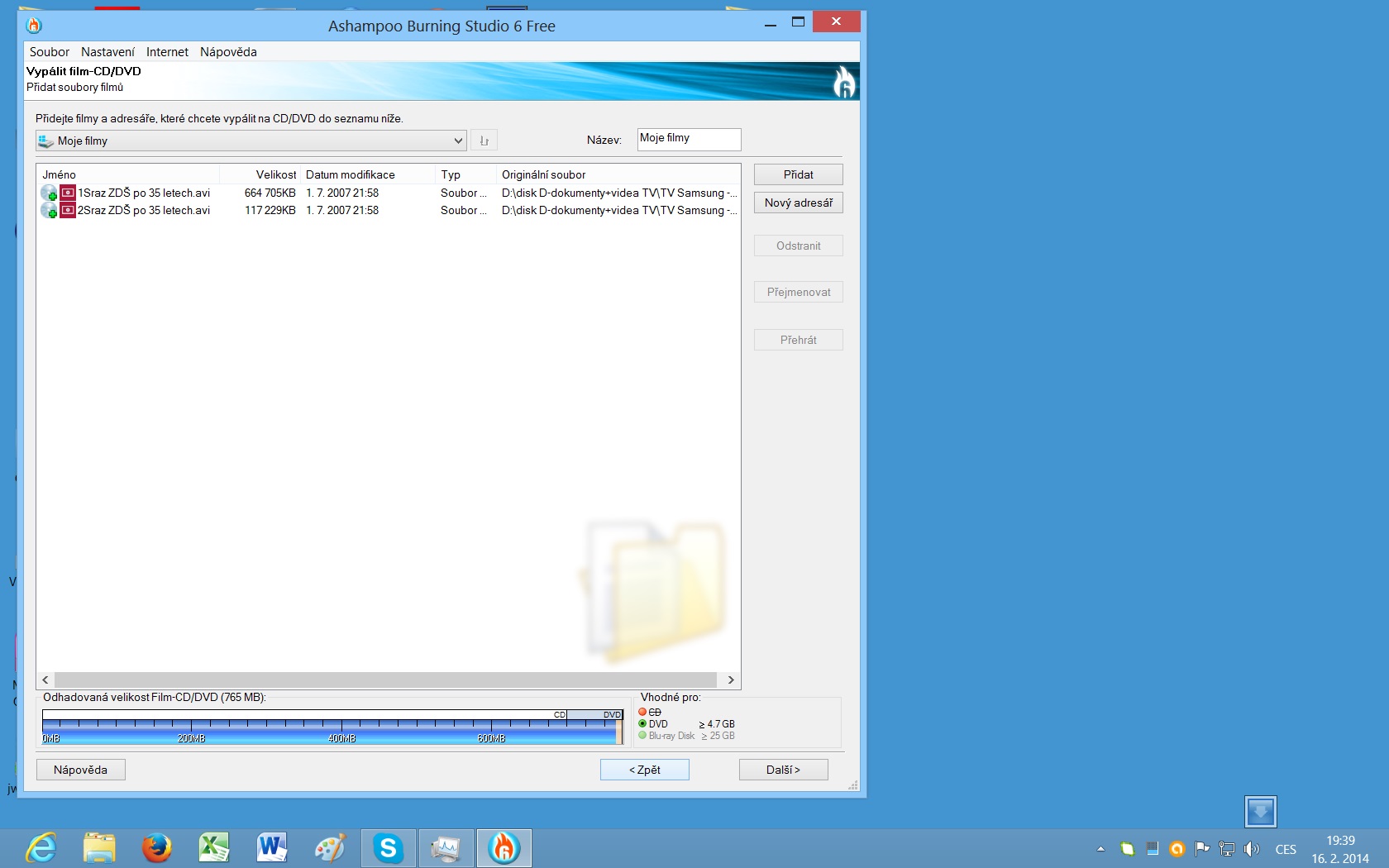 Soubory sraz ZDŠ se mi sice načtou, ale když dám DALŠÍ , tak se mi ukáže, že DVD není zapisovatelné.