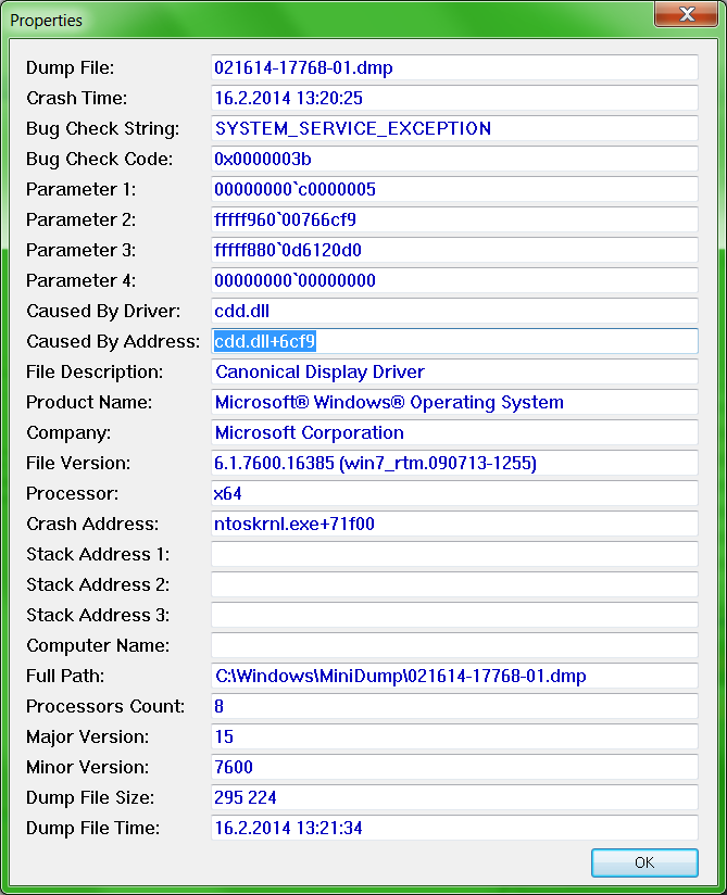 Prošel jsem si ty události a není mi tak úplně jasné z jakého důvodu jsi mě tam nasměroval, protože mi nepříde že to má něco společného s řešením bsod, nicméně nirsoft bsod viewer používám už nějakou dobu a tady mi trochu pomohlo tvoje popostrčení, protože jsem tupě přehlížel právě ty ostatní prvky logu jako je právě caused by driver. Nicméně Z eventlogu jsem se nedozvěděl v podstatě nic, události před pádem nejsou zaznamenané žádné a pak už následuje jen hlášení o vypnutí PC. Z viewru jsem se dozvěděl trochu více po následovném googlení, ale pořád si nejsem jistý jak nyní postupovat, proto posílám log.(oba jsou stejné)