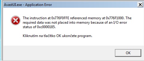 Špatný start systému: PC Suite error a Avastui error
