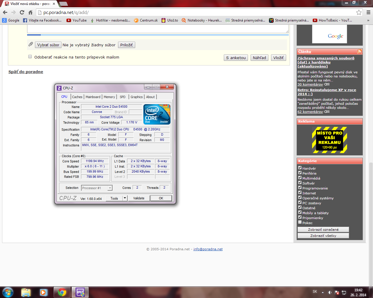 Ahoj, mám taký problém .... mam trochu starší pc ale mam v ňom nový hard disk, grafiku, ramku atd... jediny problem je že mam slaby procesor ale kebi som si chcel kupit novy tak by som musel kupi vlastne aj novu dosku a do tej by nemusela ist grafika a bla bla bla ... :-D ide o to ze mam procesor intel core 2 duo e4500 a mal by ist asi 2.2 GHz ale ked si stiahnem nejaky program ktori to ukazuje dava iba 1.2 GHz (na obrázku) neviete či sa s tym neda niečo spraviť ?? predom dakujem za odpoved