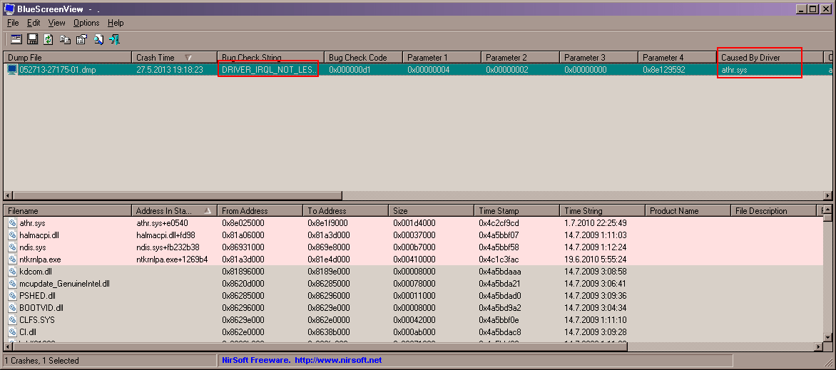 A pod tabulkou s názvem: Caused by driver ma napsané: ntkrnlpa.exe (asi 5x to tam mam) a jednou tam…
