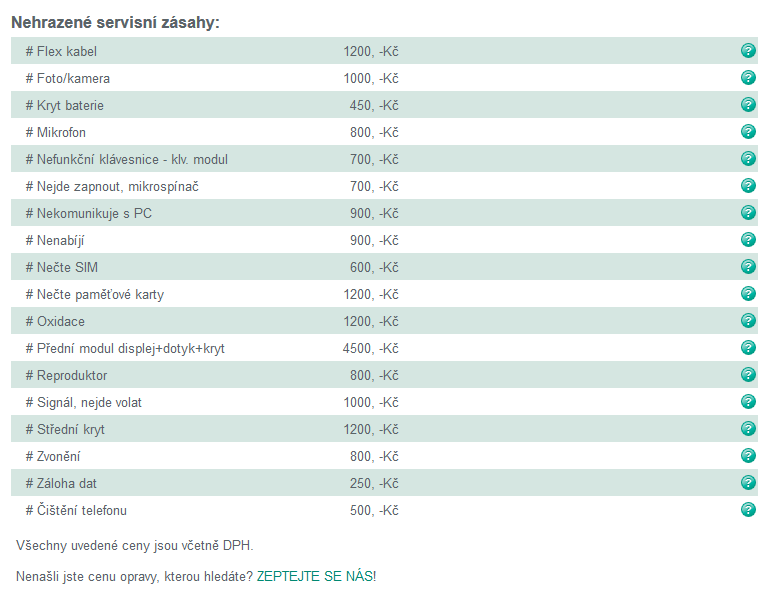 | Zde je cenník oprav u Mobil pohotovosti: