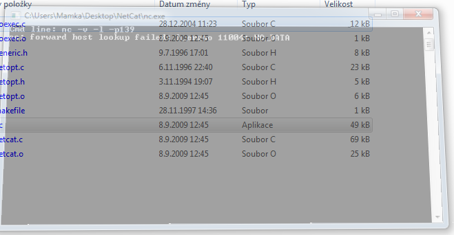 Netcat spadne a zanechá za sebou rychlé chyb. hlášení (sry lepší fotka fakt nešla), které máte v příloze.