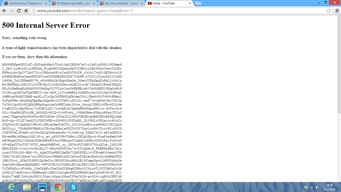 Ja mam Slovak Telecom a youtube nacita iba stranku a potom mi vihodí túto chybovú hlášku nový