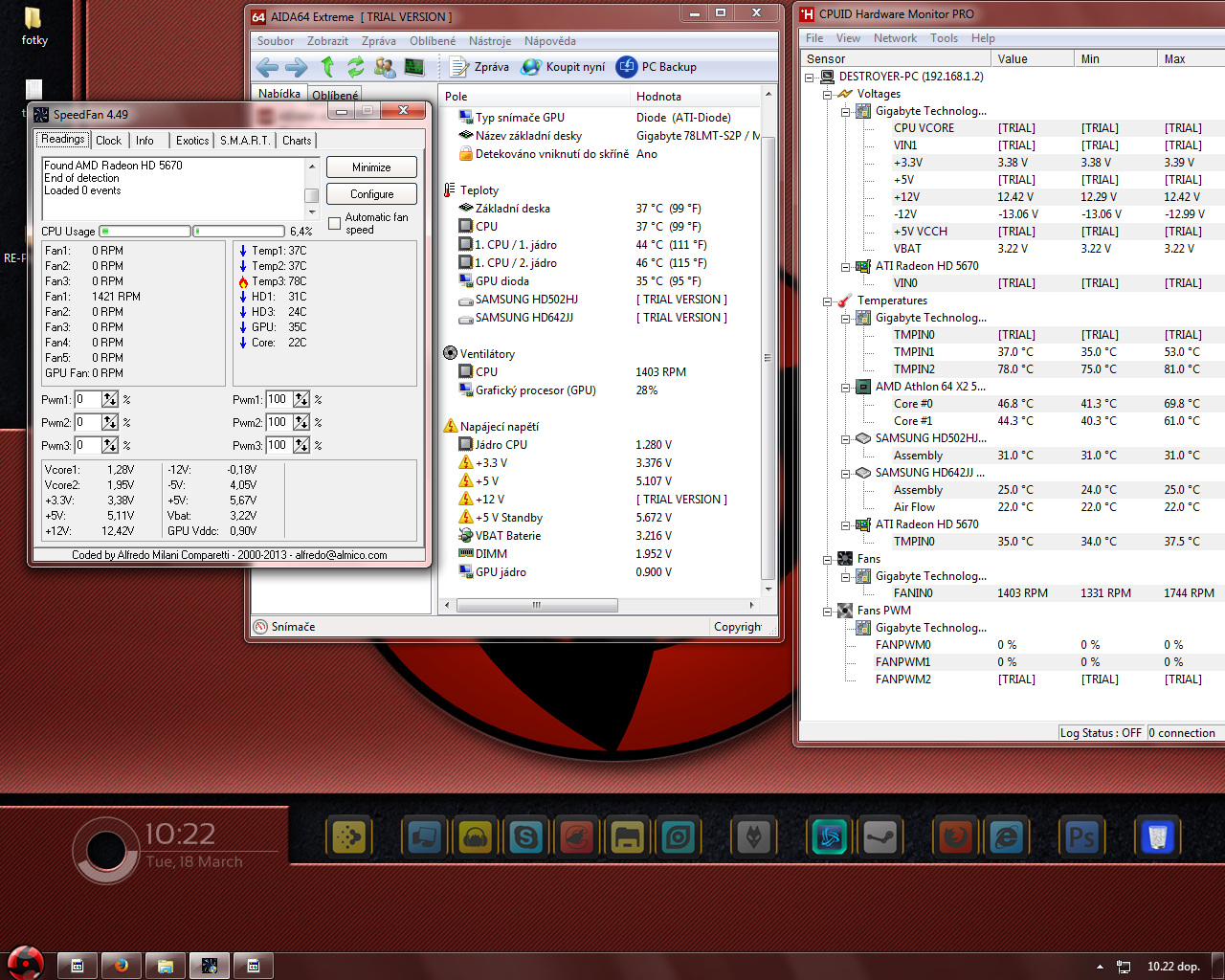 Tak to jo! Ted sem zapnul Speed fan a na Temp 3 mě to ukazuje -128C takže to neber je to blbost.