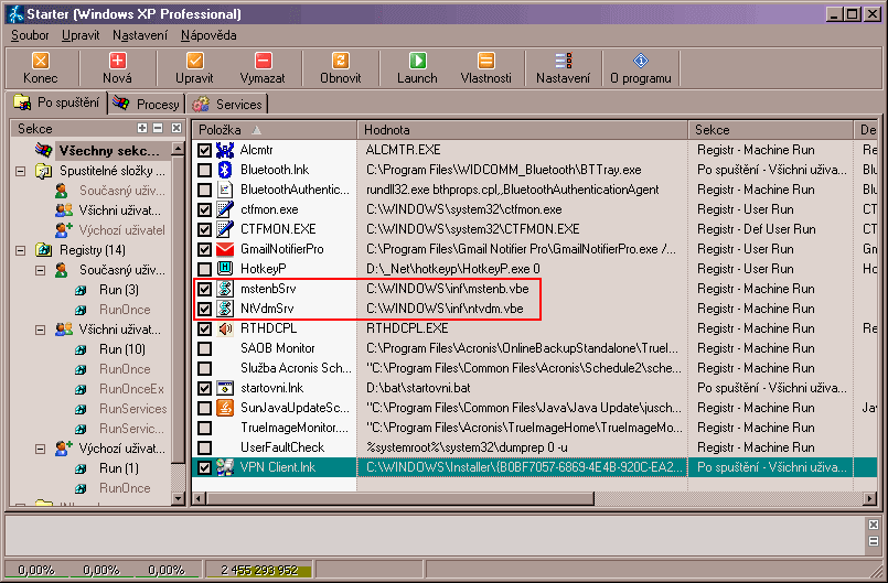 nejjednodušší je: podívat se nějakým rozumným nástrojem, co se ti pouští po startu z nesmyslného (nepříslušného) adresáře \windows\inf.