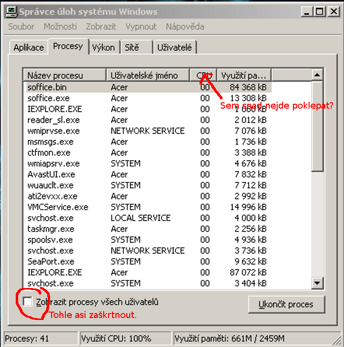 Máš nějaký psychický blok, že nezaškrtneš to zobrazení procesů všech uživatelů?