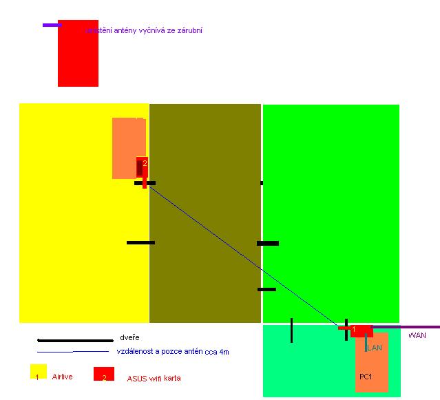ty rušení tipuju .nebudu to brát provázkem ale jedinný co signálu vadí jsou dvoje dveře vzdušnou čarou. mám antény daný tak aby koukali ze zárubní.