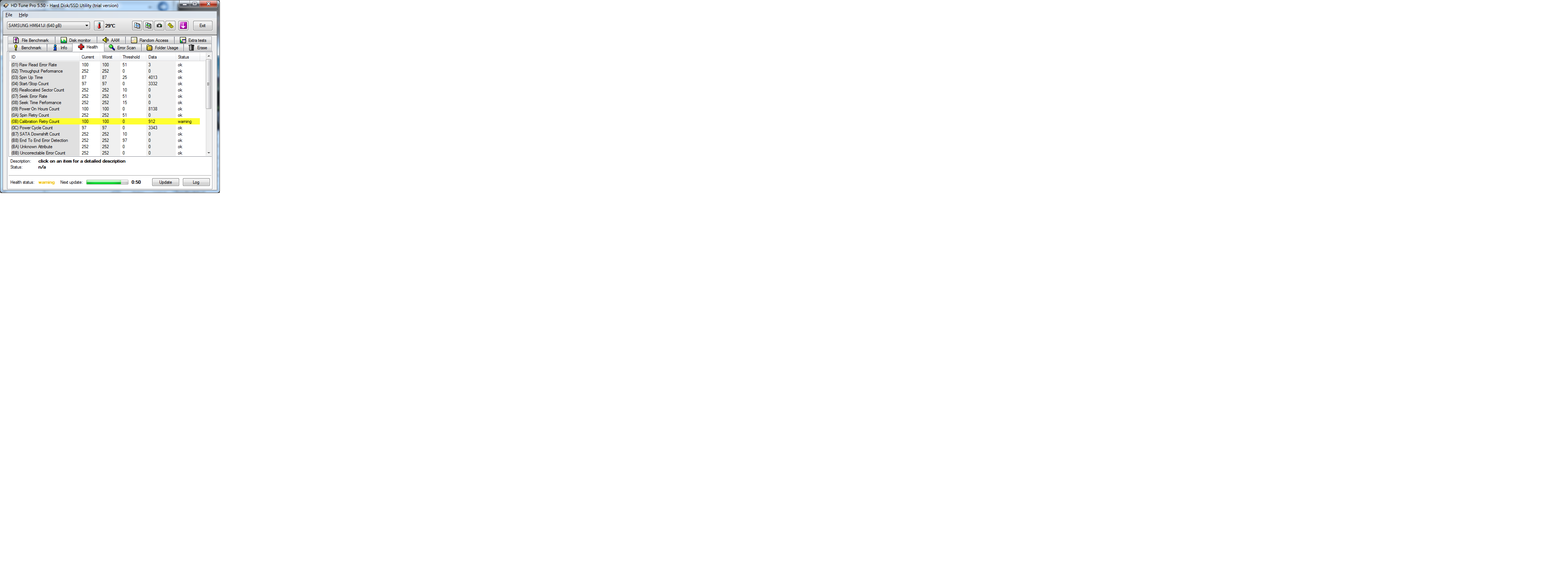PS: Zapol som ten hd tune, a v sekcii health mam warning pri polozke calibration retry count, idem testovat ....