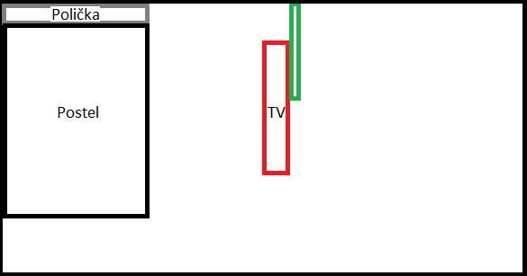 bydlím v dlouhém pokoji (úzká nudle), kde na jedné krátké straně je okno, na druhé postel. Rád bych do půlky delší strany pokoje umístil plochou televizi tak, aby jí bylo sledovat z postele - viz. přiložený obrázek.
