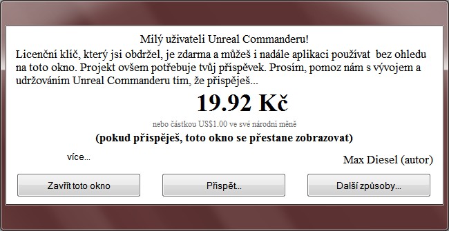 UC je freeware - užití není časově omezeno, ale autor si může volit formu případného přispění. Třeba zde si též může vybrat, nebo prostě použije aplikaci, co je přítomná v normálním os, tj. klasický řádkový klient a prý jde znásilnit i Průzkumník, pak nač krást.