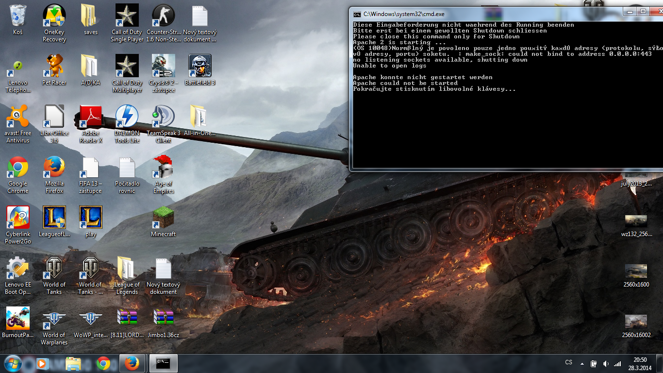 na portu 443 ti již něco poslouchá. Co, to zjistíš pomocí příkazu netstat -ano | find "443" Podle č…