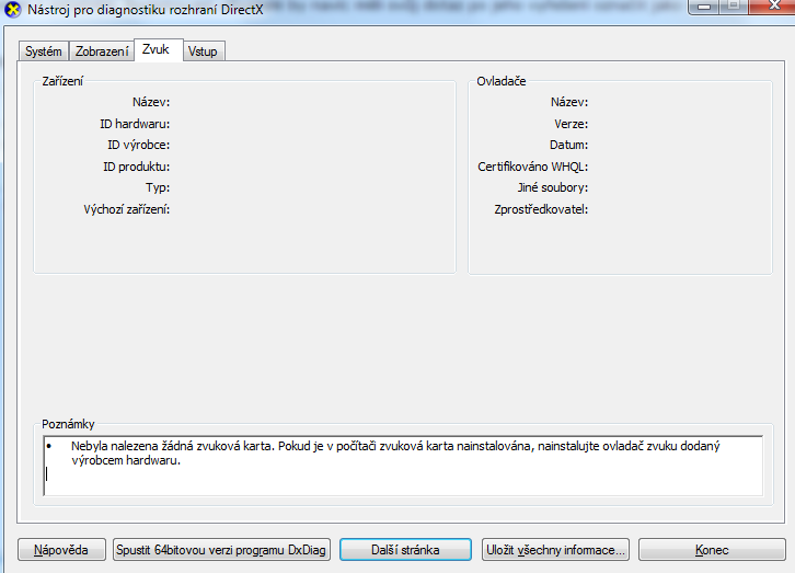 přeinstavovaní Win a už jde Zvuk Děkuji všem za pomoc poslední