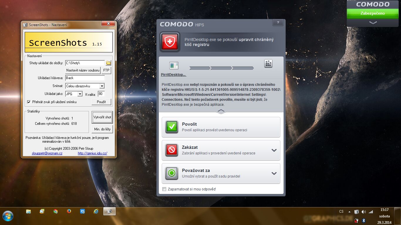 | Když už COMODO používáte doporčuji spouštět prohlížeče ze sandboxu, přístup do sandboxu prohlížečú j… poslední OOO7 29.03.2014 18:09 |