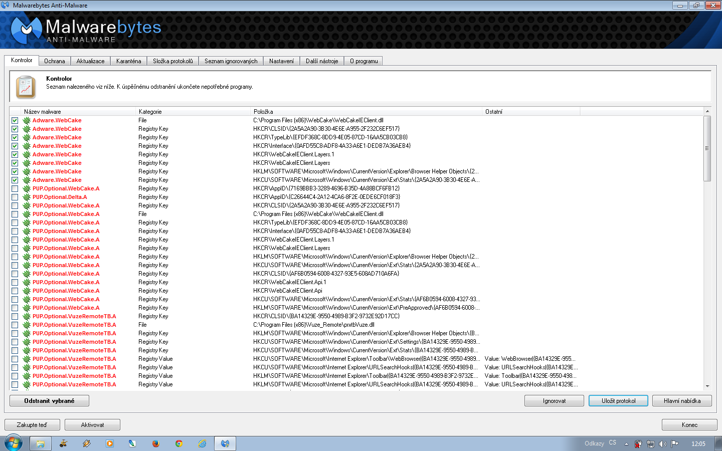 nechal jsem jeden PC zkontrolovat pomocí Malwarebytes a našel plno problémů.