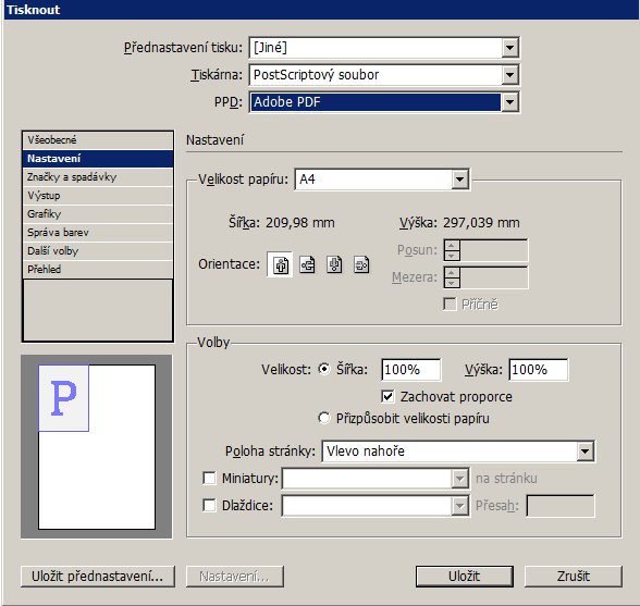 potřebuji poradit s vytvářením post scriptového souboru z InDesignu.