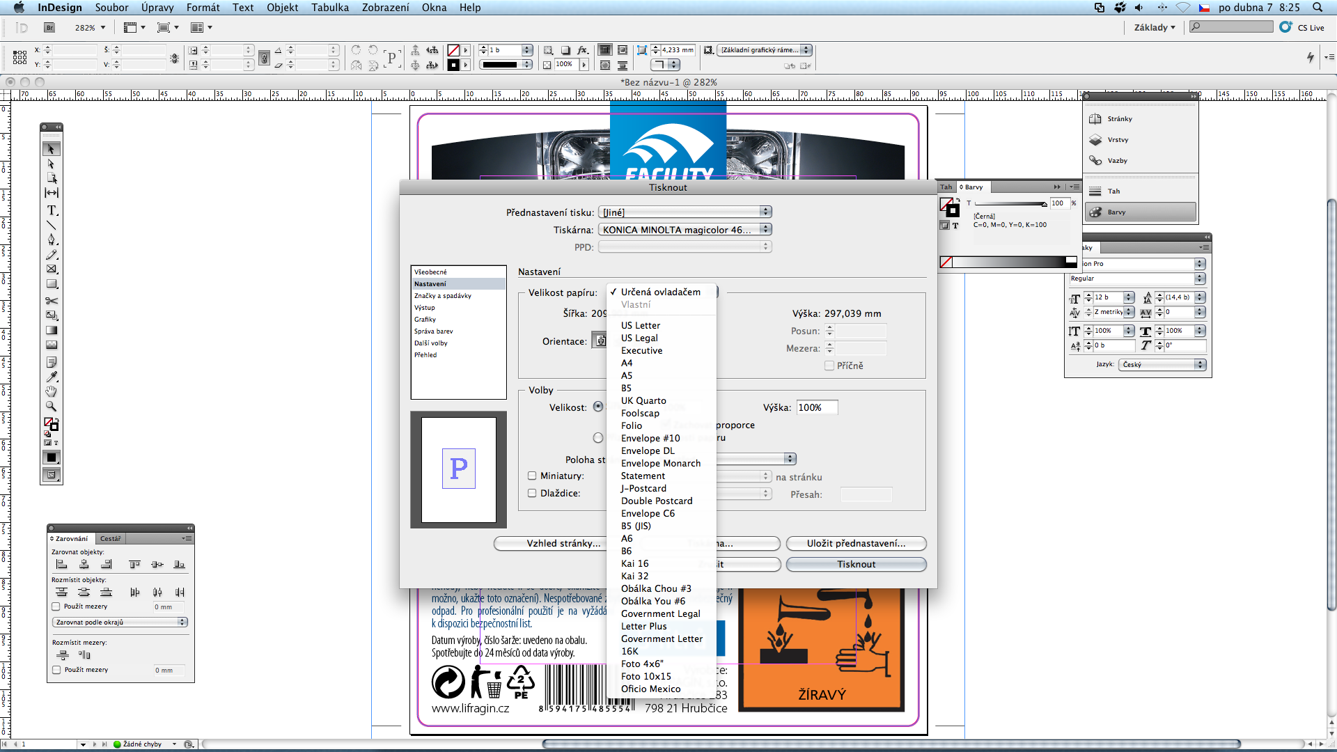 Vytvořím si dokument 90 x 120 mm, vložím data a pak dám tisknout a nastavím si uložení do post scriptu.