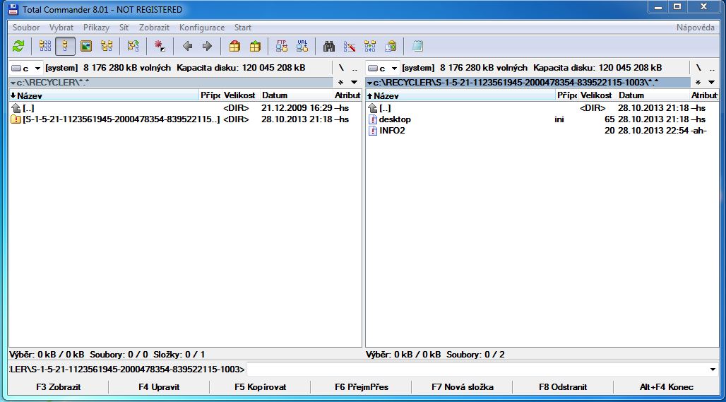 V příloze vám zasílám jak to vypadá když v Commanderu otevřu adresář /recycler