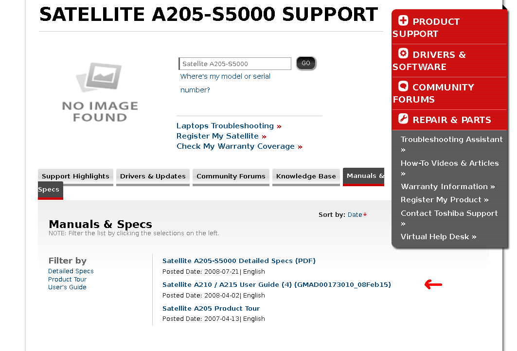A kde jsi hledal? Mě to netrvalo ani 15 vteřin. http://support.toshiba.com/support/modelHome?freeT e…
