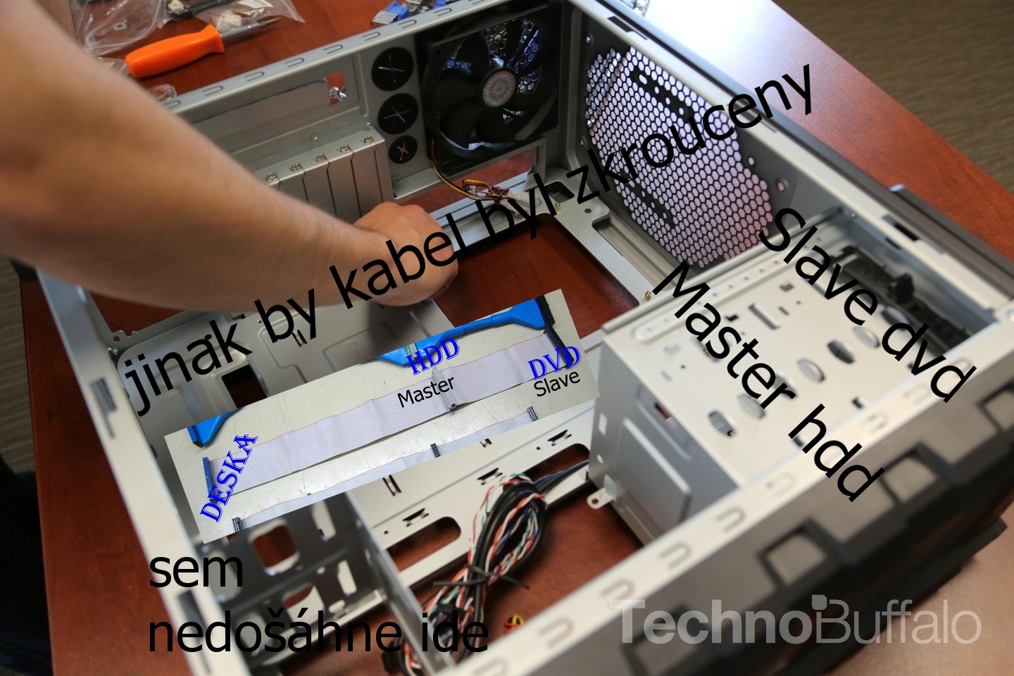 když bych hdd dal na konec a mechaniku do prostřed tak by kabel byl hodně překroucenej protože ta bedna je na sata disky které mají být ve předu dole tam by mi ale nesáhl kabel,takže musim mít hdd v díře na 3,5 zařizení a mechaniku na hoře