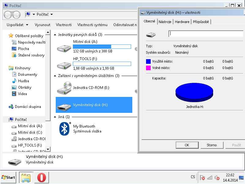 Ahoj jak už jsem tu jednou psal že mi z ničeho nic flasch disk nefunguje, prostě když jí strčim do pc tak bliká a ten zvuk po zastrčení slyšim, a v tento počítač se mi ukazuje fleška takhle ale když naten disk poklepu tak se mi ukáže toto, samozřejmě ten Disk H se mi ukáže jen v nouzovim režimu v normálnim režimu ne, může to být tim Filesystemem? mám tam důležitý věci ale jasný už jsem slyšel vaše názory ještě je tu jedna fotka a toje správa disku na levé straně se ukazuje Disk 1 vyměnitelné medium, dříve byla pojmenovana jinak v čem tedy může být problém? může to být filesystemem? nebo je v pr***eli řadič nebo čip? díky. Je nějakej způsob jak aspon nějak zachránit z toho ty věci?, mám 4 gb flešku o velikosti