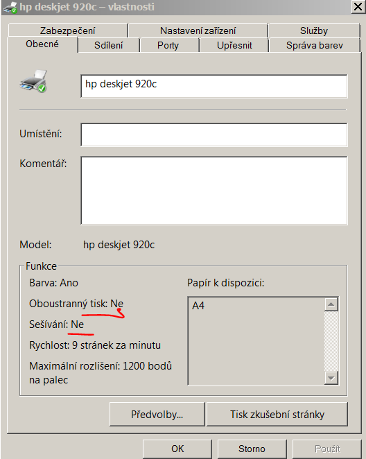 Mám tiskárnu HP deskjekt 920C - při OS WIN XP vše vpořádku , přešel jsem na WIN 7 -tiskárna mi sice tiskne ale nemá všechny funkce které měla ( např. oboustraný tisk ) . Zjistil jsem to že ovladače dodané k této tiskárně nejsou kompatibilní s WIN 7 tak jsem se snažil stáhnout aktuální ovladače od výrobce pro Win 7 ale nějak se mi to nedaří , stale mi to hlásí chybu s kompabilitou . Našel jsem i několik jiných ovladačů a bylo jich dost až jsem v to stratil a nerozchodil jsem to ! Hlavně ten oboustraný tisk což mi docela chybí !! Který je ten správný ovladač který bude fungovat ? Děkuji .