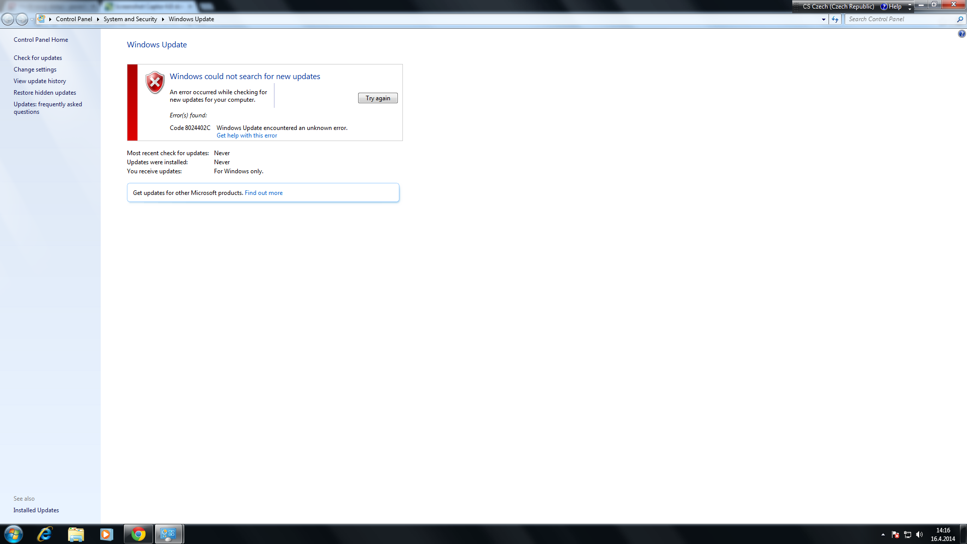 Zdravím mám tu jeden problém z nějakého důvodu nemužu nastavit v ovladacích panelech český jazyk , mám těd angličtinu ,když chci udělat windows update vyskočí mi chyba WindowsUpdate_8024402C" "WindowsUpdate_dt000" jinak jsme zkoušel také Clock ,language, region a mám pod ním jen -change keybords or orther input methods přitom bych zde jěště měl mít právě tu výměnu toho jazyka nevím si rady projel jsem celý internet a nikde nic .. děkuju předem za reakce