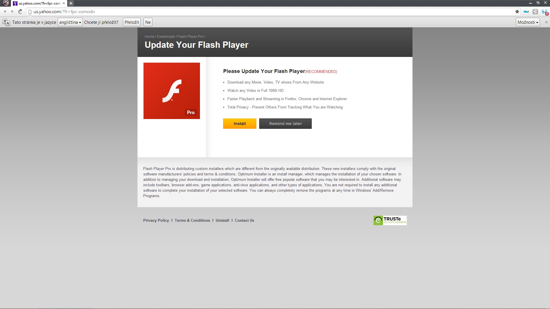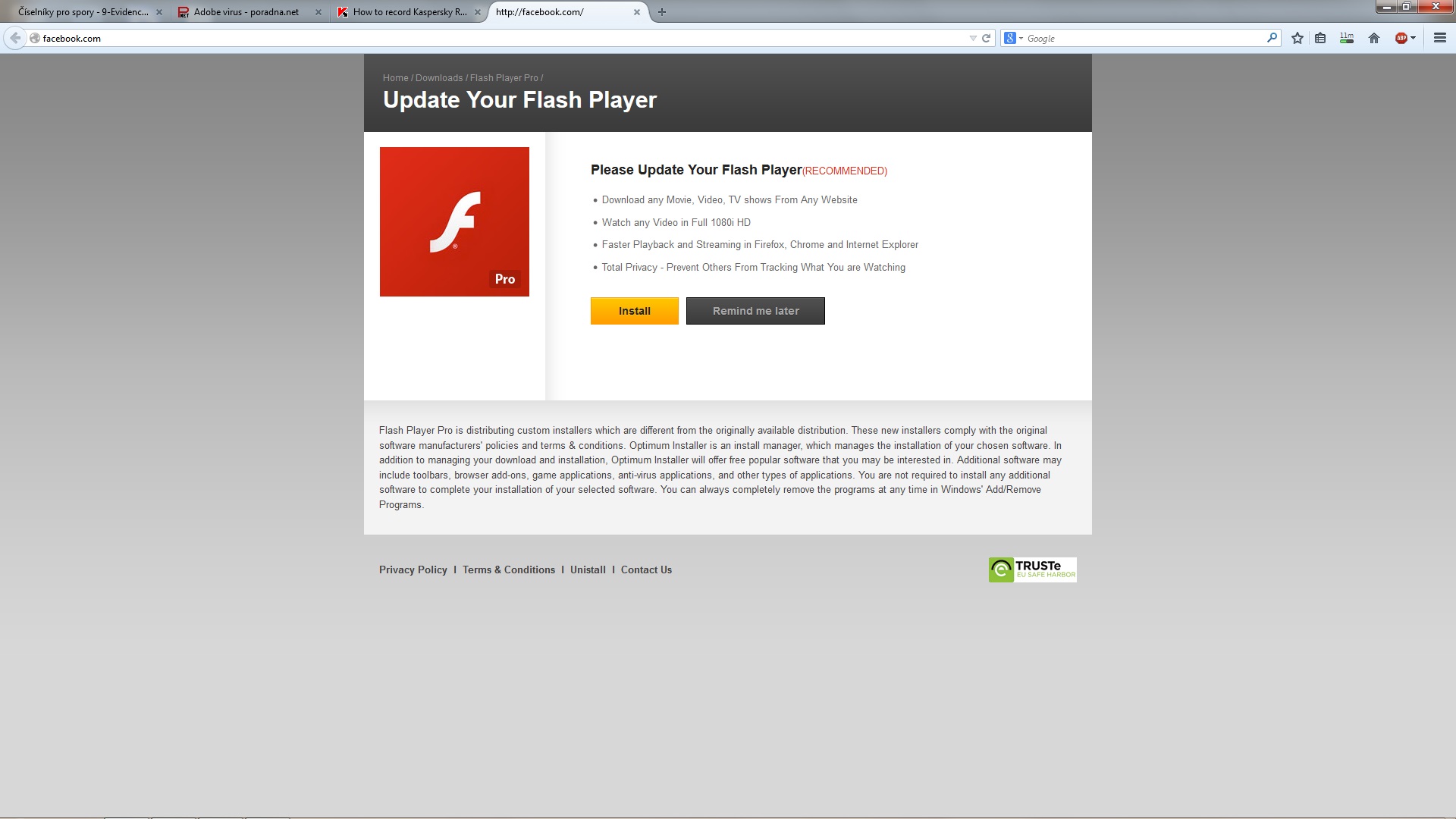 Zkoušel jsem původně kliknou na tlačítko instal, ale nic se nestahuje ani neinstaluje. Zkoušel jsem aktualizovat adobe flash player, ale mám ho aktuální. Problém stále přetrvává.