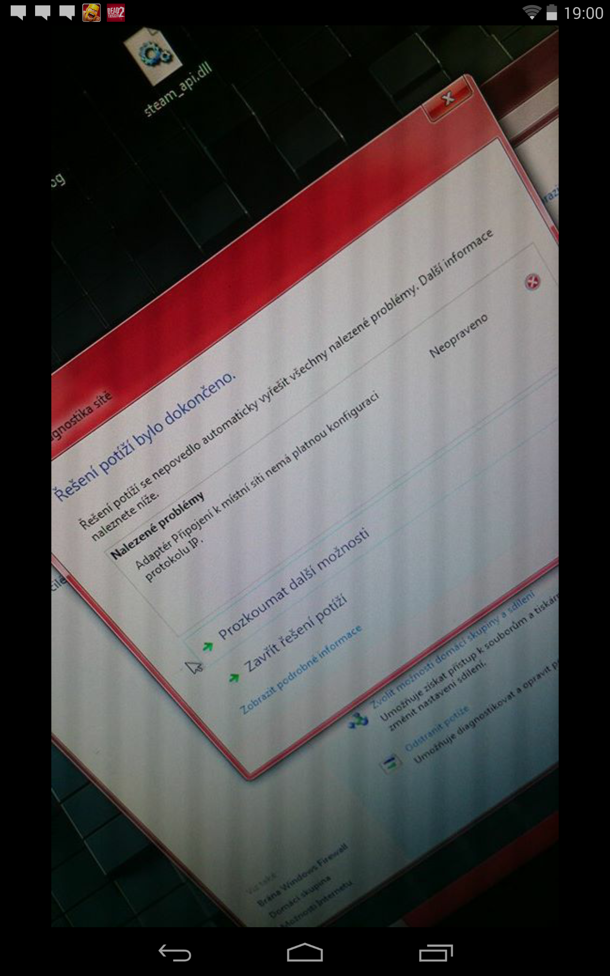 Není platná konfugurace protokolu IP, díval ses? Proč to fotíš?