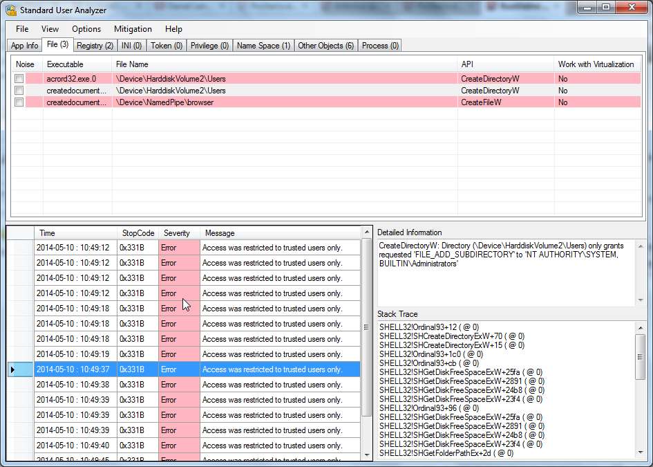 CreateDirectoryW: Directory (\Device\HarddiskVolume2\Users) only grants requested 'FILE_ADD_SUBDIRECTORY' to 'NT AUTHORITY\SYSTEM, BUILTIN\Administrators'