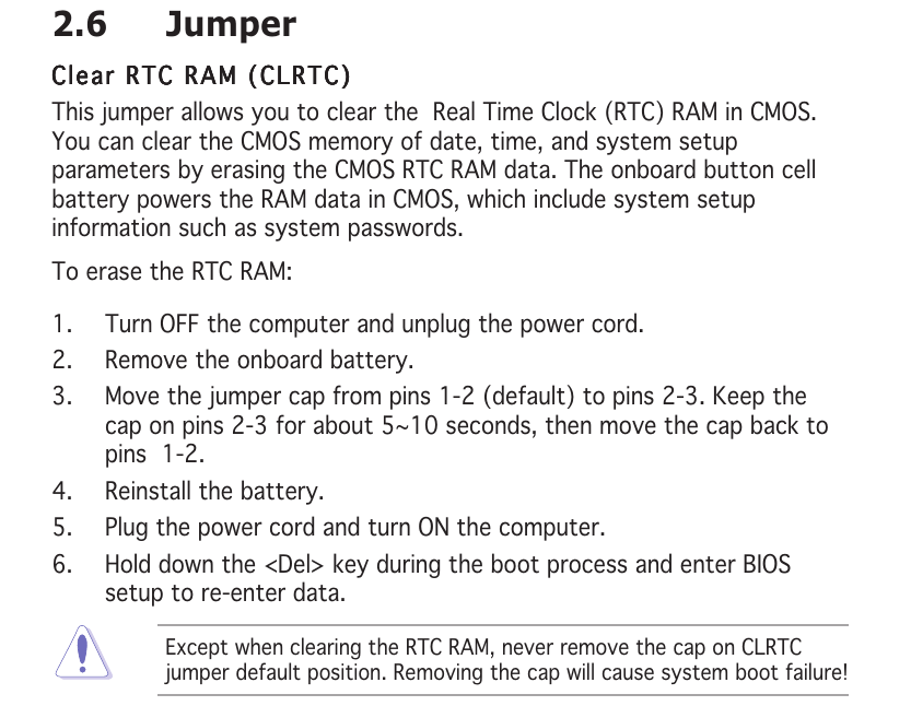3. Když se do něčeho leze, pak je nejlépe si stáhnout a přečíst manuál. Asus, jako obvykle, dává přesný postup jak "vypucovat" nejen RTC.