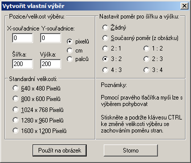 chtěl bych si vyvolat fotky na formát 15x10 cm, což je formát 3:2. Originální fotky bych si chtěl ořezat, jelikož nejsou v tomto formátu a nechci aby mě to ořezávali automaticky. V programu IrfanView jsem našel funkci, která dokáže z fotky udělat ořezávku 3:2 (Edit -> Create maximized selection ratio -> 3:2).