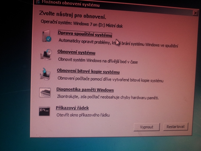 Zas skus pouzit tie moznosti opravy - opravit bootovanie. Potom to robi co? USB stick si uz odpojil?