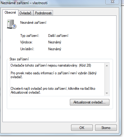 ovladače tohoto zařízení nejsou nainstalovány (kod28)