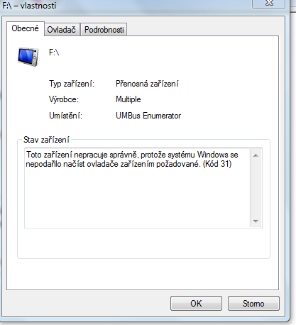 Toto zařízení nepracuje protože systém windows nepodařilo načít ovladače požadované (kod 31)