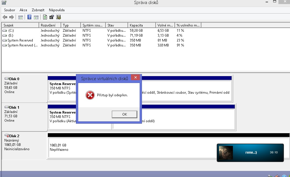 tak nouzový jsem zkoušel stále pristup odepren antivirus uz je completne pryc nooo a nerozumim live…