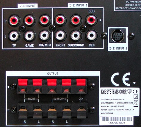 Ty repráky jsou Genius 5.1 5000 HT a chybí mi (5.1)Input 2 na propojení s PC.